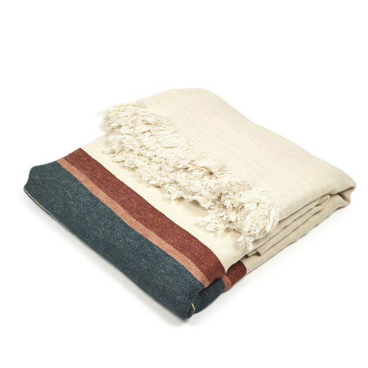 Diese wunderschöne Decke lässt sich mühelos mit anderen Kollektionen kombinieren . Die mittelschwere Konstruktion verfügt über einen raffinierten Saum in der Mitte und ist oben und unten mit verspielten Fransen versehen.