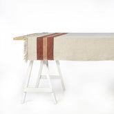 Eine kräftige und doch raffinierte Tischwäsche mit einem kraftvollen Zusammenspiel von Textur und Farbe. Hergestellt aus einzigartigen Leinengarnen mit handgefertigtem Charakter verleiht diese Tischdecke Ihrem Interieur eine stilvolle und natürliche Note. Die robuste Konstruktion, kombiniert mit eleganten Fransen an beiden Enden, sorgt für einen einzigartigen und luxuriösen Look.