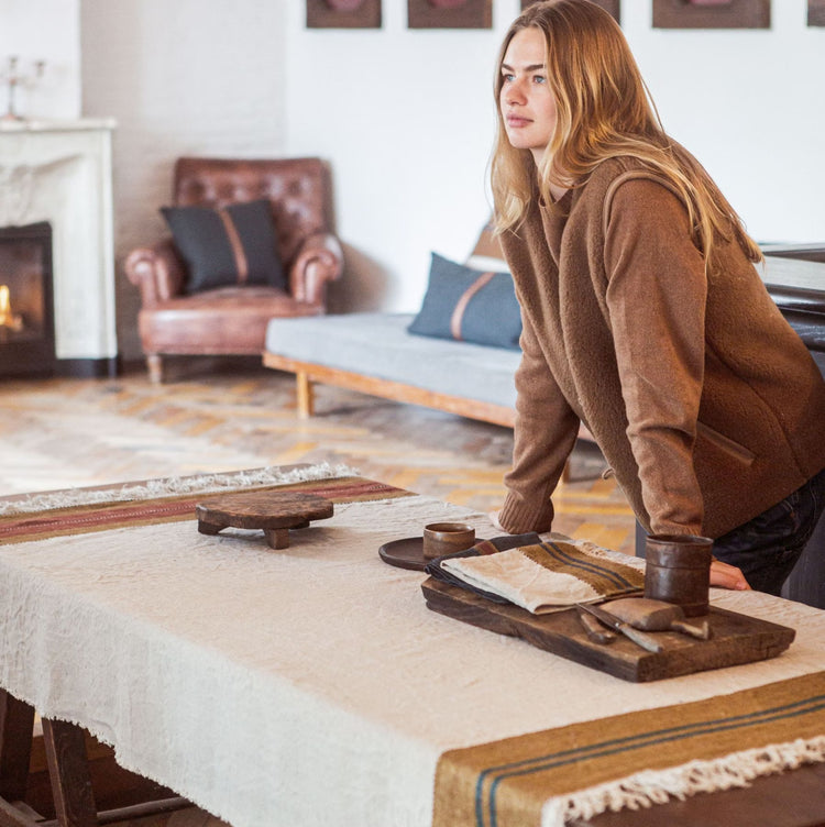 Erleben Sie die ruhige Schönheit des Mittelmeers mit der Tischdecke Loulida . Diese einzigartige Tischdecke aus 100 % gewaschenem Leinen verleiht Ihrem Tisch einen handwerklichen Charme. Im Gegensatz zu einer herkömmlichen Tischdecke lässt sie einen Teil des Tisches frei und sorgt so für einen modernen und lässigen Look. Dieses strapazierfähige Stück mit eleganten Fransen ist im Schonwaschgang maschinenwaschbar und verbindet zeitlosen Stil mit Alltagstauglichkeit.