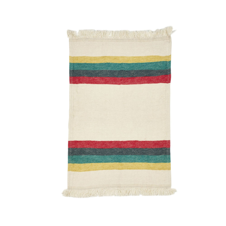Bringen Sie mit dem Multicloth Small Summer Stripe eine sommerliche Atmosphäre in Ihr Zuhause oder unterwegs. Dieser wunderschöne Leinenteppich kombiniert einen leichten, atmungsaktiven Stoff mit einem zeitlosen Streifendesign in warmen und kühlen Tönen.