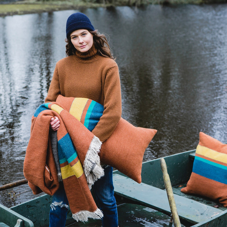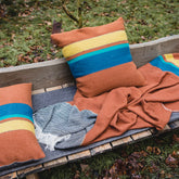 Der Kissenbezug „Redwood“ bietet eine kräftige Mischung aus tiefen Paprikatönen und leuchtenden Streifen.